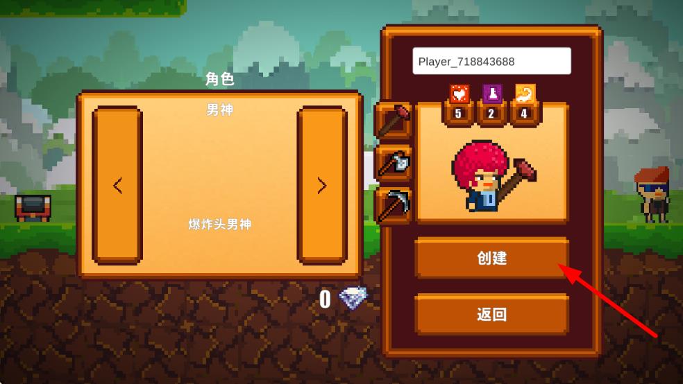 3、在角色创建页面,选择或设置好角色外观等信息后,再次点击创建 ,成功创建角色后,即可在游戏内进一步操作来创建房间进行游戏。
