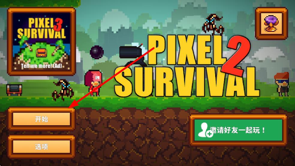 1、打开像素生存者2游戏,在主界面点击开始按钮,进入选择角色界面。