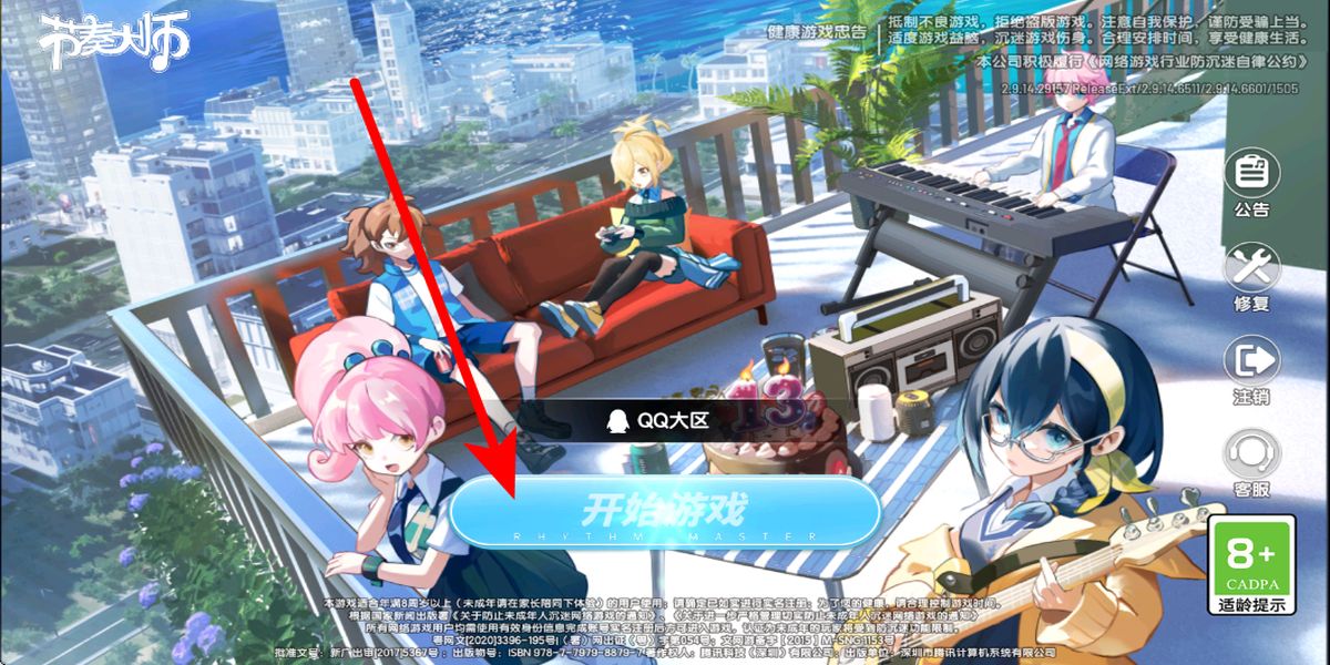 1、进入界面后,点击开始游戏,跳转至主场景,随后选择闯关,初始关卡多为简单节奏曲目,深入了解音符点击规则与节奏判定标准,全面体验备好基础内容。
