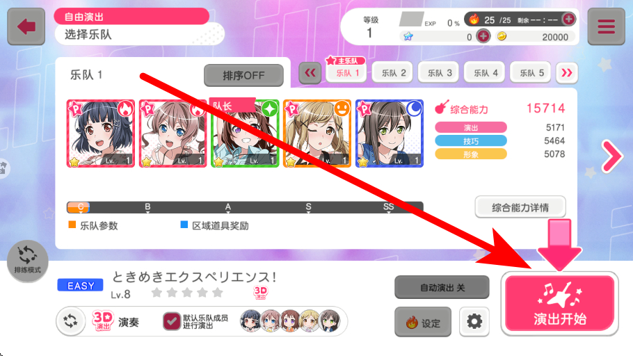3、挑选乐队要在乐队选择界面,从不同的乐队中选择合适的乐队,之后点击演出开始,让选定的乐队开始进行音乐演出。