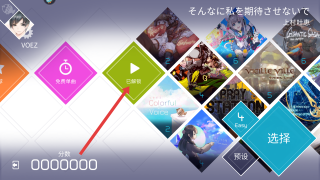 接下来,萌新可以选择「兰空」主题曲《Colorful Voice》,了解「兰空」世界。点击「游戏」进入选歌页面,在右侧选择「A→Z」排序、「Easy」难度,点击《Colorful Voice》曲图即可。第一次获得「Full Combo」,接下来的曲目你一定也会充满信心吧~