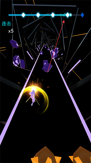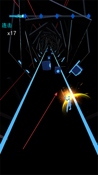 赛道中会随机出现加速、变向等特殊机制,配合节奏变化的方块,要求玩家在保持节拍感的同时快速调整操作,考验手眼协调能力。