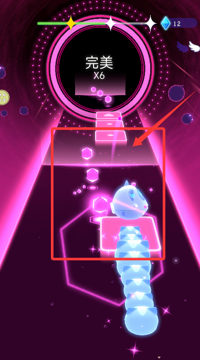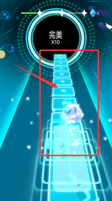 3、根据旋律节拍,让角色精准踩踏接连出现的音符,获取最高评分。