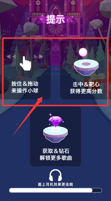 4、游戏开始后,通过滑动控制小球轨迹,瞄准中心区域获取更高分数。