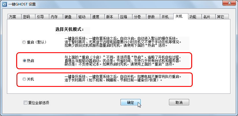 增设关机-热启,解决少数电脑重启时死机问题