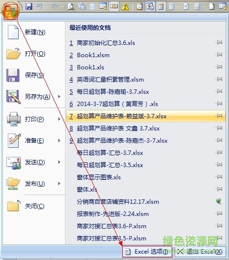 1.首先打开excel2007,点击左上角的图标,在出现的菜单界面中点击下方的“excel选项”。