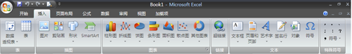 在excel 2007的中,功能区将相关的命令和功能组合在一起,并划分为不同的选项卡,以及根据所执行的任务出现的选项卡。