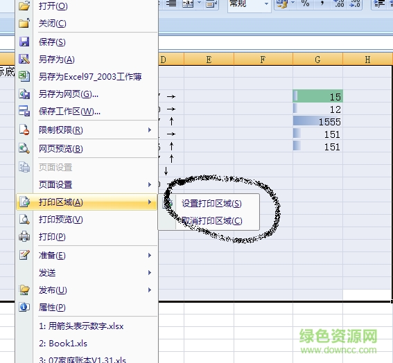 六、excel2007怎么设置打印区域?