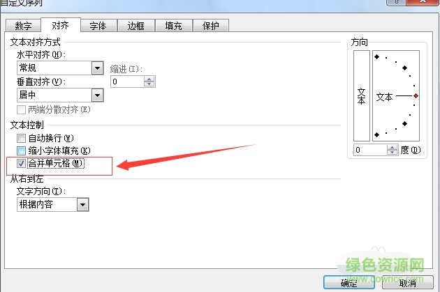 6.在“设置单元格格式”对话框中选择“对齐”选项卡,勾选“合并单元格”,点击“确定”按钮。