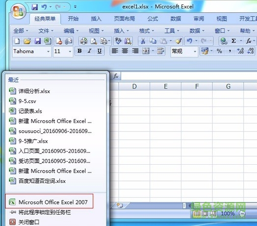3.打开第二个表格时候,不是双击打开,而是在电脑底部的任务栏上,右击excel图标,我们看到microsoft office excel 2007,然后点击它