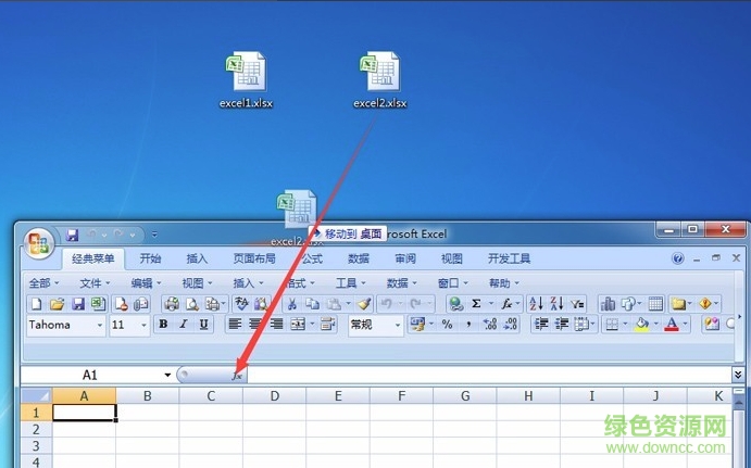 5.点击任务栏的microsoft office excel 2007后,我们就新建了一个空白的excel窗口,然后把桌面上需要打开的excel2拖到这个窗口来,这样桌面就有两个excel窗口了