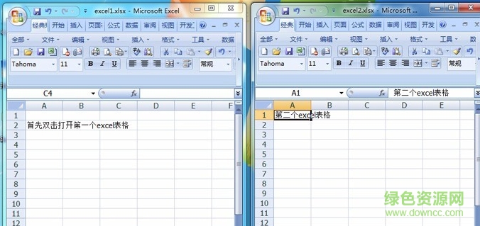 6.打开后的excel1和excel2,它们分别在单独的两个窗口上展示,大功告成。