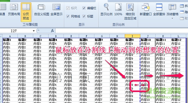 4.分页之间有一个分割线,把鼠标移动到线上,等待一会,然后按住拖动到想要的位置。