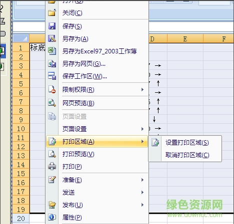 6.在向右移动鼠标到设置打印区域