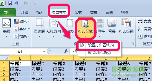 2.选中之后,点击最上方的“页面布局”,再点击“打印区域”,在下拉中选择“设置打印区域”。