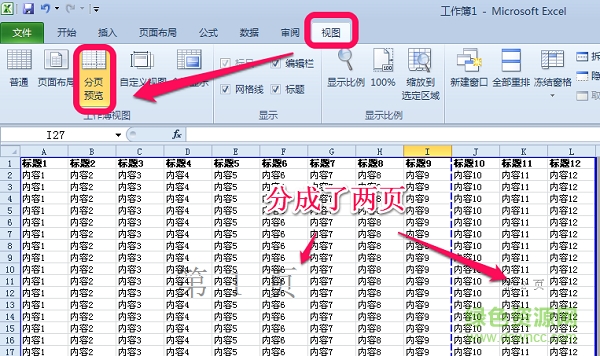 3.点击上方的“视图”选项,再继续点击“分页预览”。