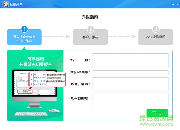 2.安装软件,安装成功,点击立即体验,自动进入流程指南界面,录入本企业信息(名称,纳税人识别号,地址、电话,开户行及账号),本企业信息的填写请务必按本企业税务登记信息准确填写。