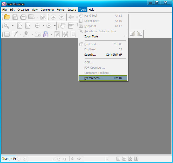 打开Foxit Phantom,在Tools 菜单栏里找到Preferences,如下图: