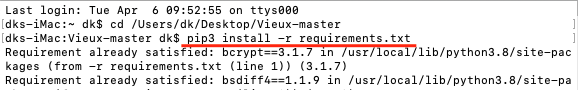 1,终端输入: cd /Users/dk/Desktop/Vieux-master(终端输入cd +空格,把vieux文件夹拖进去)