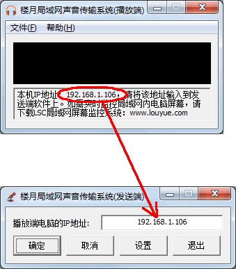 3、将播放端软件文本框内显示的本机IP地址输入的发送端界面上,