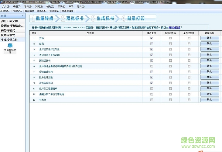 该软件主要用于建筑工程技术标招标中。制作投标文件的专用工具由投标单位使用,通过光盘导入招标文件后,根据本单位实际情况进行投标文件的编写,生成投标文件并刻入光盘。