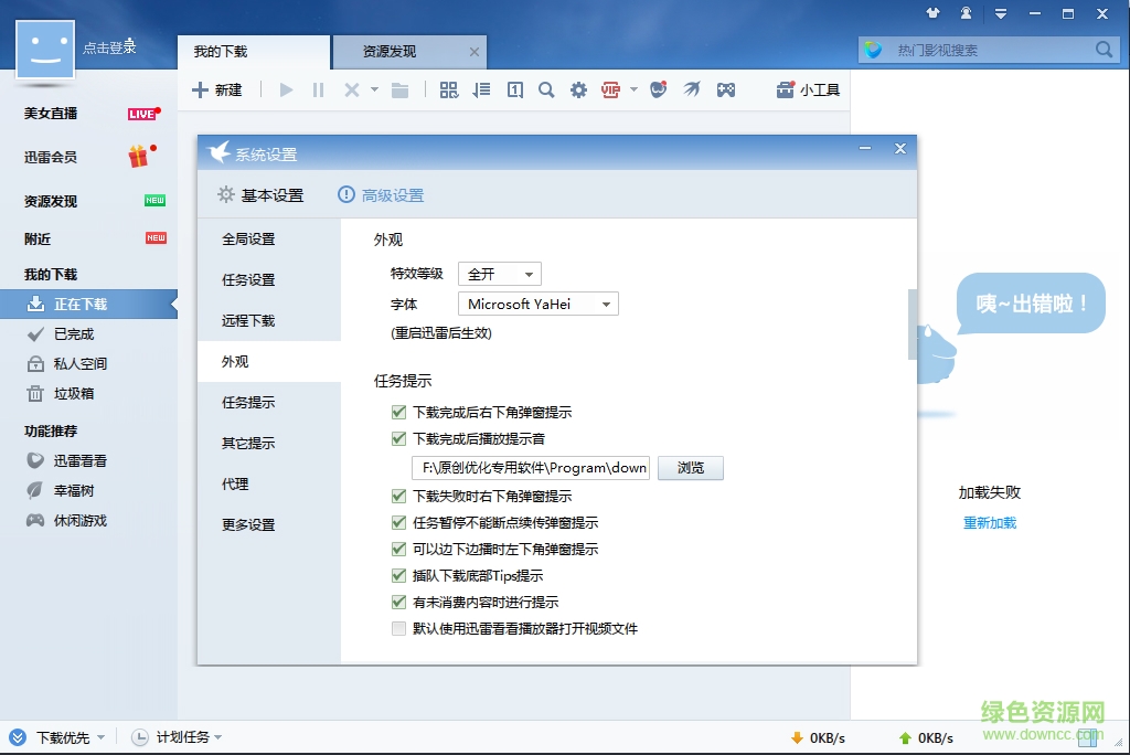 2.“下载完成提示”改为从右下角弹出
