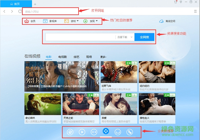 【分类推荐】:根据常用网址,热门视频等栏目对相关信息进行分类推荐