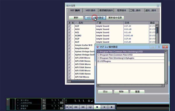 9、选择VST插件路径,将Hypersonic2的安装目录导入软件中(ddooo1文件夹),然后点击“刷新”按钮,刷新插件库,如下图所示: