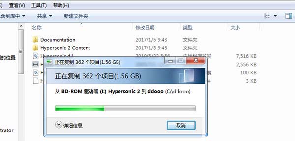 4、安装完成之后,将虚拟光驱中的音色文件夹Hypersonic2Content复制到软件的根目录下(ddooo文件夹下)