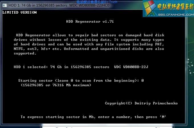 HDD Regenerator 唯一可以修复硬盘物理坏道的工具,但是许多人还不怎么会用,现在就拿HDD Regenerator 1.71版做个教程。