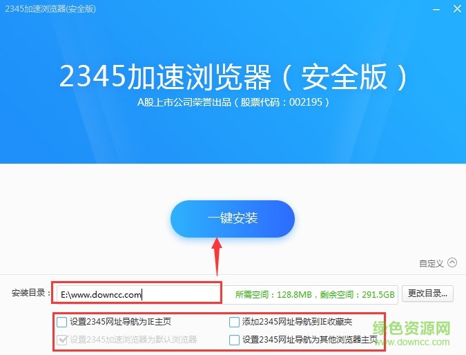 2.打开程序,可以直接点击“安装:,或者通过右下角的”自定义“按钮选择安装路径;