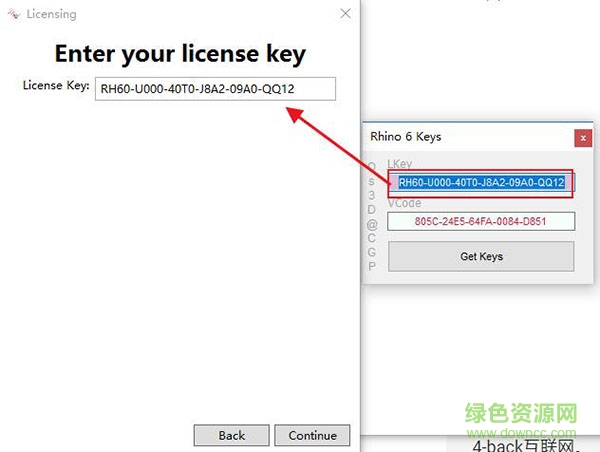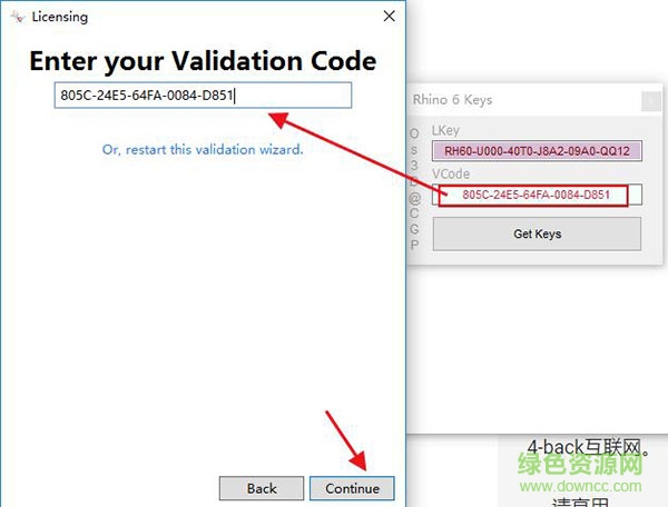 7.注册机上的激活码复制到软件上然后点击continue,完成之后重启软件就是