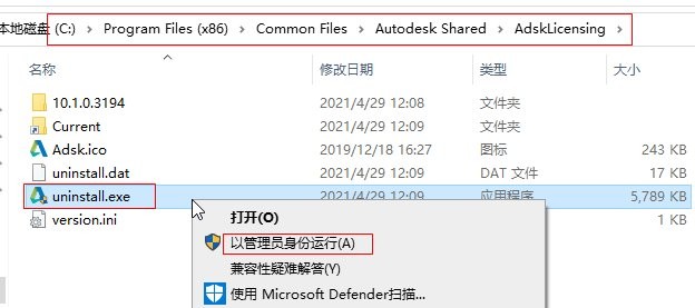 1、首先打开下图所示文件夹,运行uninstall.exe,卸载掉2021版本的激活验证工具;(此步骤无卸载界面显示,文件夹为空即为卸载完成)