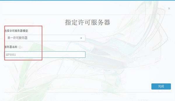 9、选择“单个许可证服务器”输入“127.0.0.1”。