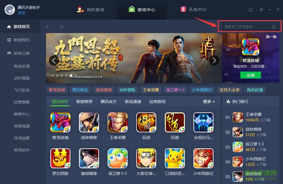 一、打开腾讯手游助手并在游戏搜索框搜索"Pokemon Go "
