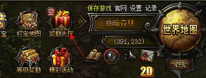 2、点击游戏右上角“奖励大厅”