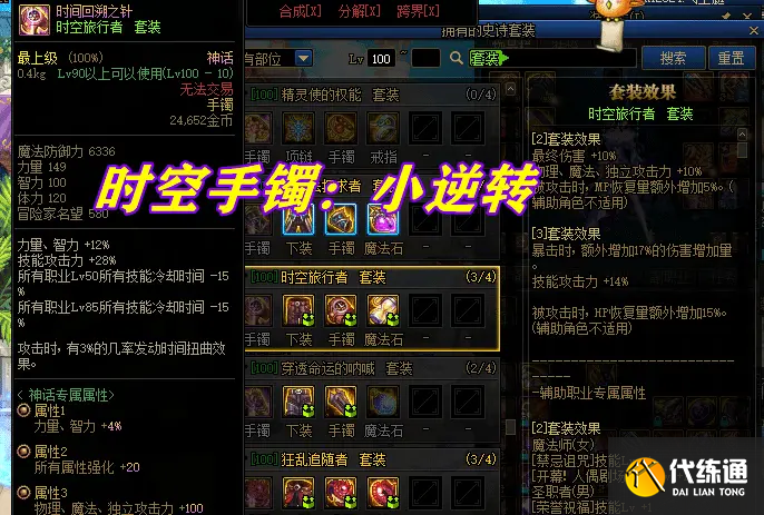 刚说完时之魅影,这里时空套也上来了,在有神话的前提下,时空手镯就相当于“小逆转”,不仅高伤害、减CD,而且还自带重置技能,实战能力大加分;