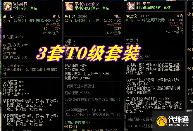 【T0级套装】:逆转3件套、军神3件套、时之魅影3件套