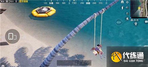 沙滩区在地图显示的是椰子树的图标,在沙滩区我们可以进行踢足球、荡秋千、海边垂钓、和跳伞这一系列的夏日活动。附近有一个中央舞台,我们可以通过遮阳伞跳到中央的收音机上面,可以看到一个物资的宝箱,宝箱里有一把专属夏日的信号枪,向天空发射信号枪会有空投落下,里面会有一套三级套装、吉利服和两把超级空投武器。