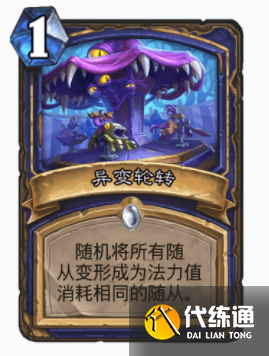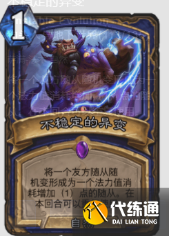 一张进化萨的核心组件,随机将所有随从转化成法力值相同的随从,无论是配合522,还是423,311,都有十分不错的效果。需要注意的是,这张卡还可以对敌方的随从生效,对于一些被buff过的牌以及大哥牧的随从,都能起到很好的克制效果。