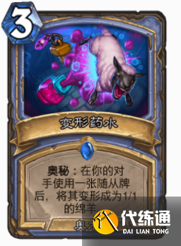 一张三费奥秘,属于被动的变形卡牌,对对手使用的一个随从造成变形,上限很高,同时下限也很低,进可变羊939,退只能呱个报告兵,再加上天梯对于奥秘的克制,算不上一张优质卡。