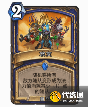 萨满的一张群体退化,仅仅对敌方随从有效果,因为其只要2费的强大,所以几乎是奇数萨的必备解场法术。