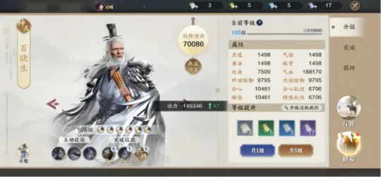 95级可以将伙伴的等级提升至105级,全部升完能带来235点左右的功力提升。如果有神侠的话提升将更多,目前二星的神侠放在助战是性价比最高的选择。