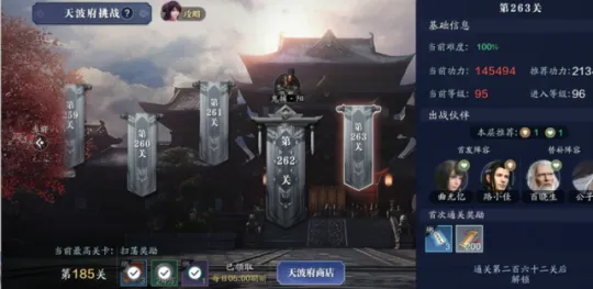 95级开放到了天波府的262层,和魔踪现世一样,262层对于大部分少侠来说,当前阶段通关比较艰难,预计17.5W功力以上的少侠可以通关。
