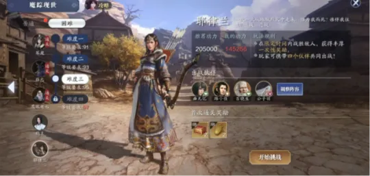 95级开放魔踪现世耶律兰困难难度三,难度仍然较高,对于大部分少侠来说想要在95级打过去还是不太现实的,起码要17W+的功力才有一战之力。