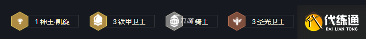 我们选择为维鲁斯凑出3圣光卫士2游侠的羁绊,现版本6圣光卫士4游侠的收益并不高。我们不妨把多出的人口换成3铁甲和4骑士,3铁甲4骑士能够保证阵容的坦度。当然3铁甲和4骑士不单单是承受伤害那么简单,这要他们扛住了,维鲁斯有更好的输出空间。神王德玛不仅凑出了4骑士的羁绊,还有个神王凯旋可视为独立羁绊。